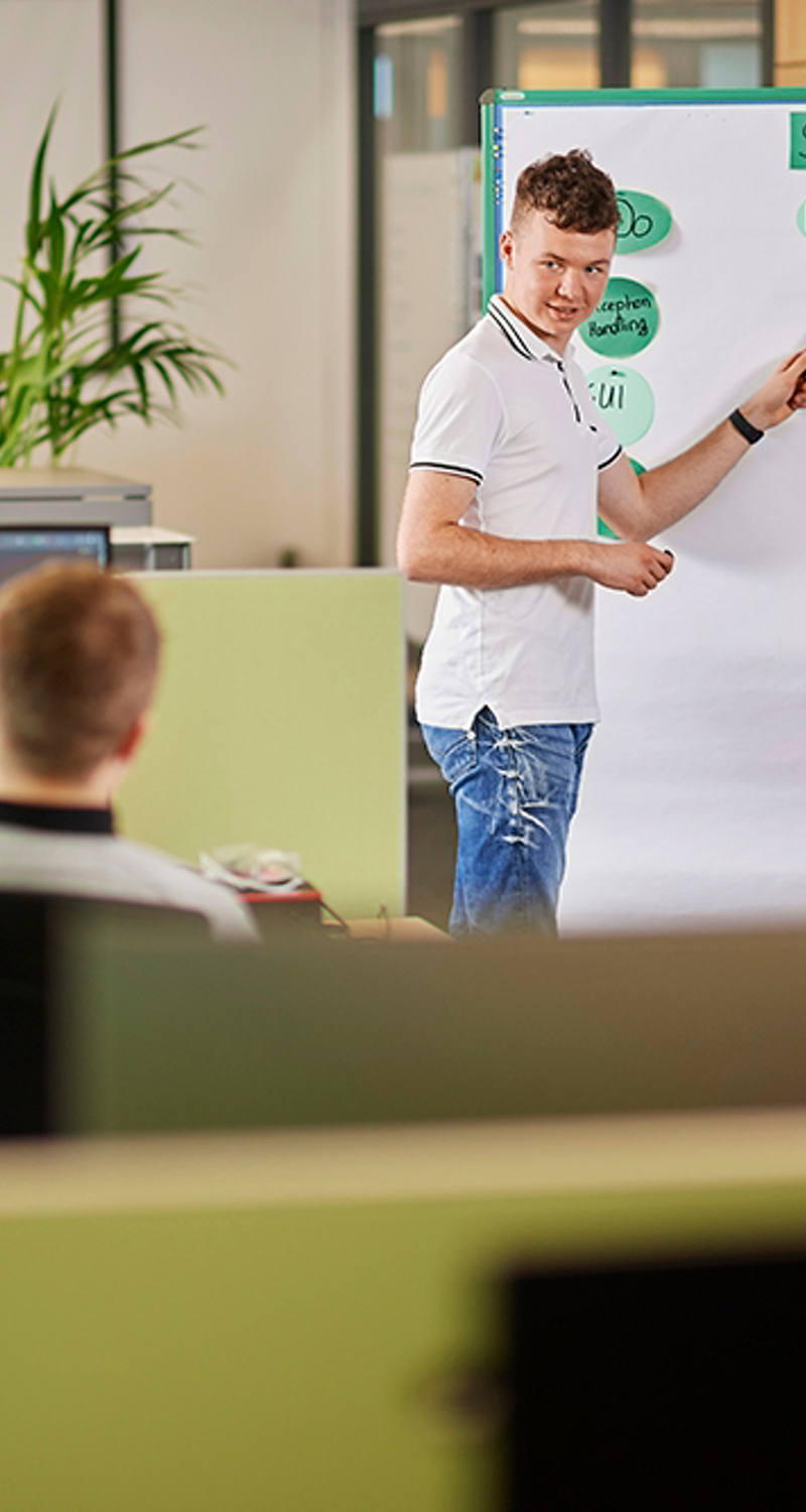 La maturité professionnelle t’offre de nombreuses opportunités. Si tu souhaites la faire pendant ton apprentissage, nous te soutiendrons. Garde néanmoins en tête que faire à la fois un apprentissage et une maturité professionnelle est une double charge.